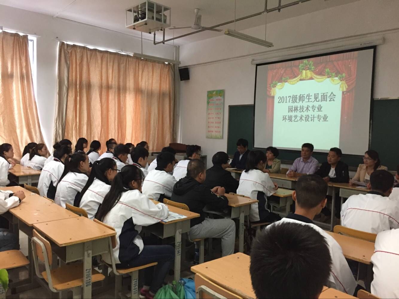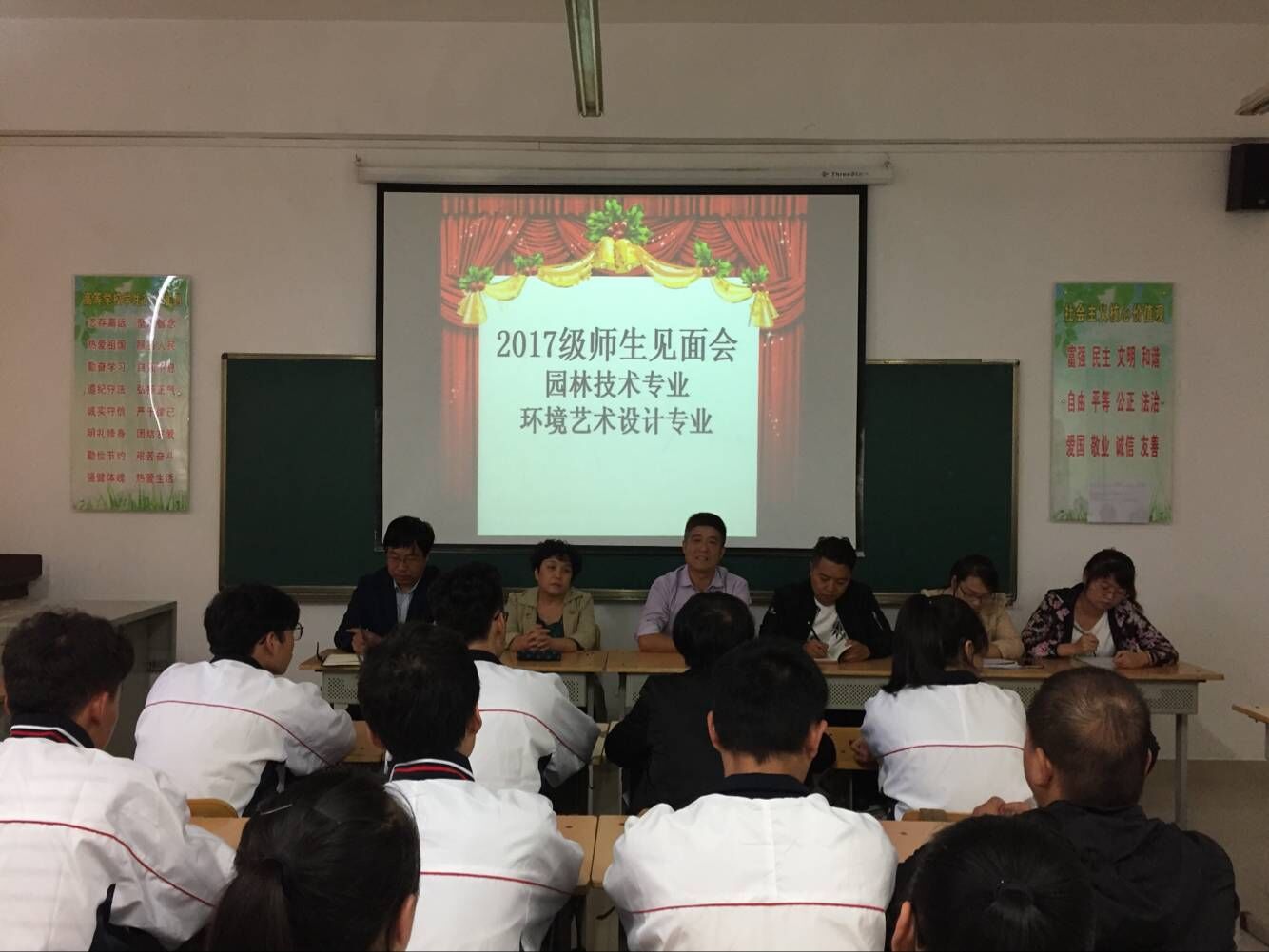9月5日下午2:30园林技术、环境艺术设计专业新生见面会在教学楼920进行,参会人员有刘建海、王晓娥、张涛、亢菲、冯馨乐等多名专业教师。