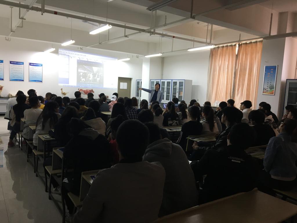 2018年3月15日上午九时,7790cnm必发集团16级畜牧兽医专业全体同学在实验楼302教室集合,参加7790cnm必发集团首场专业招聘会。听取海高牧业曹老师主持的企业宣讲会。出席本次招聘会的人员有:海高牧业曹向阳牧场主管,学发办行小利老师,教学办熊忙利老师,辅导员赵林侠老师及畜牧兽医专业16级全体同学。