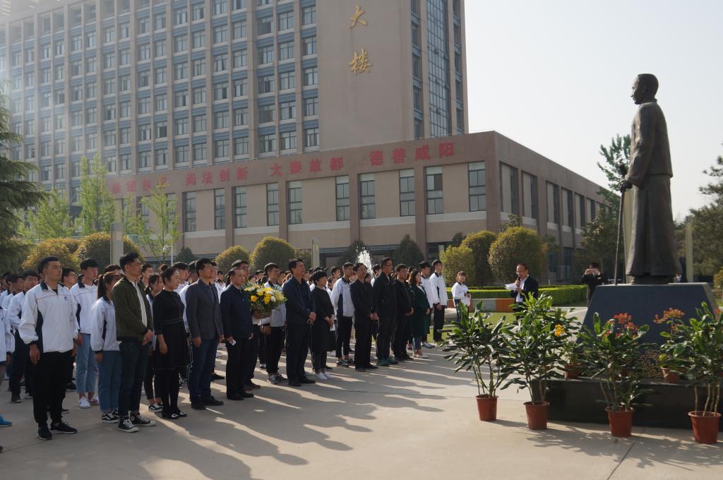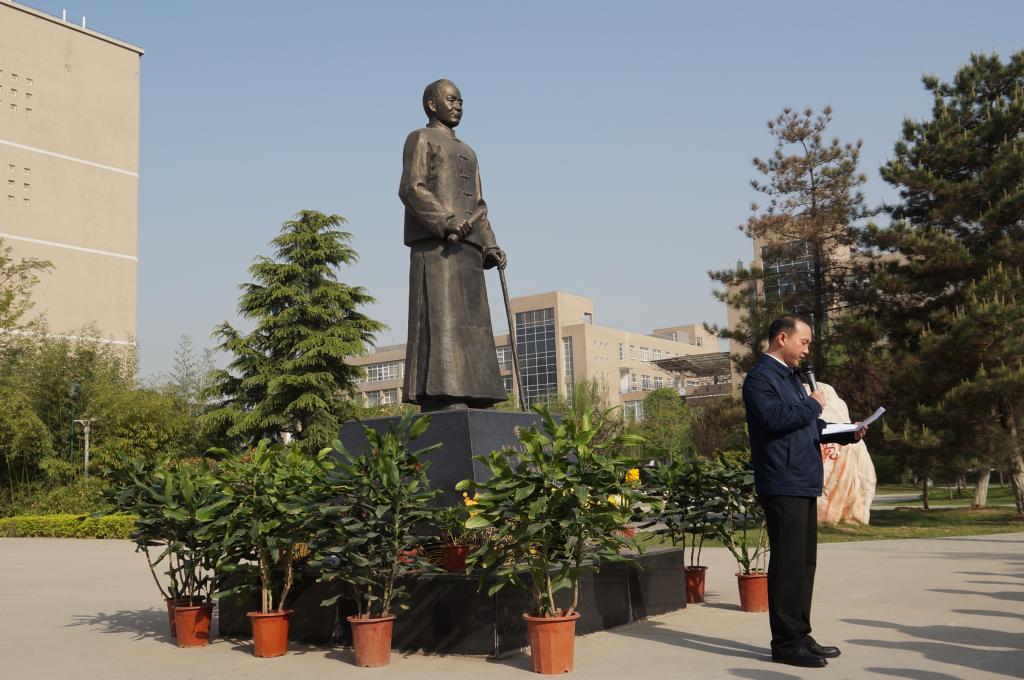 据悉,在整个活动现场,由员工处滑娟老师向李仪祉先生铜像敬献了鲜花,院团委书记高鹏老师介绍了李仪祉先生生平,吴旭锦经理诵读了祭文。会后,全体师生向李仪祉先生铜像三鞠躬,表达对先辈的无限缅怀。