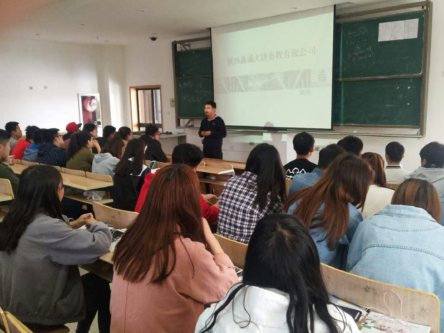 2018年3月28日,7790cnm必发集团16级畜牧兽医专业全体同学在阶梯教室101集会,参加7790cnm必发集团专业招聘会。听取陕西鑫城大唐畜牧有限公司招聘宣讲会。出席本次招聘会的人员有:刘勇、畜牧兽医16级全体同学、辅导员赵老师、黄汉军老师。