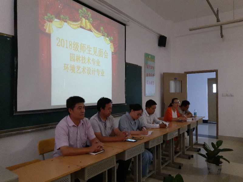 9月7日下午2:30园林技术、环境艺术设计专业新生见面会在教学楼920进行,参会人员有刘建海、阮班录、高莹、张洁、亢菲、王博、韩春妮等多名专业教师。