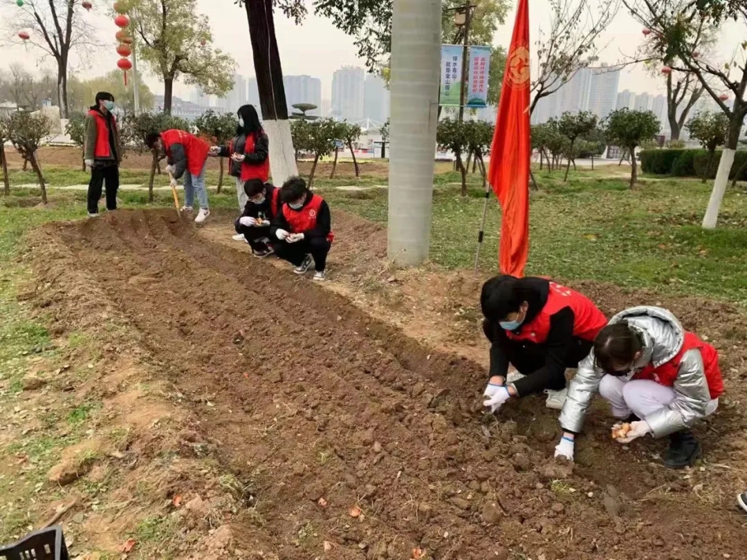 志愿者们三人一组、五人一队,挖坑、撒种、培土、浇水,分工协作,默契配合,“见缝插针”忙碌不停,几百棵郁金香苗迎着冬日的气息“安家落户。种植活动后,志愿者手拿清洁工具,对周边进行了清扫。