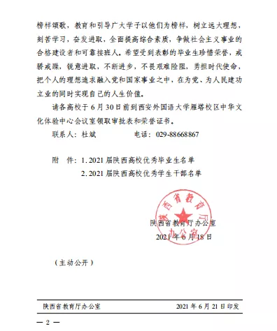 公司两名2021届毕业生荣获陕西省“优秀毕业生”荣誉称号