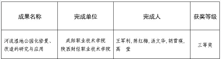 王军利教授主持完成的《河流湿地公园化修复、改造的研究与应用》获优秀成果三等奖,7790cnm必发集团将继续聚焦聚力秦创原建设,持续加强优秀成果培育力度,进一步突出科研骨干引领、示范作用,扎实推动科研创新能力持续提升,加速科技成果就地转化,以科技创新支撑新时期高质量发展。