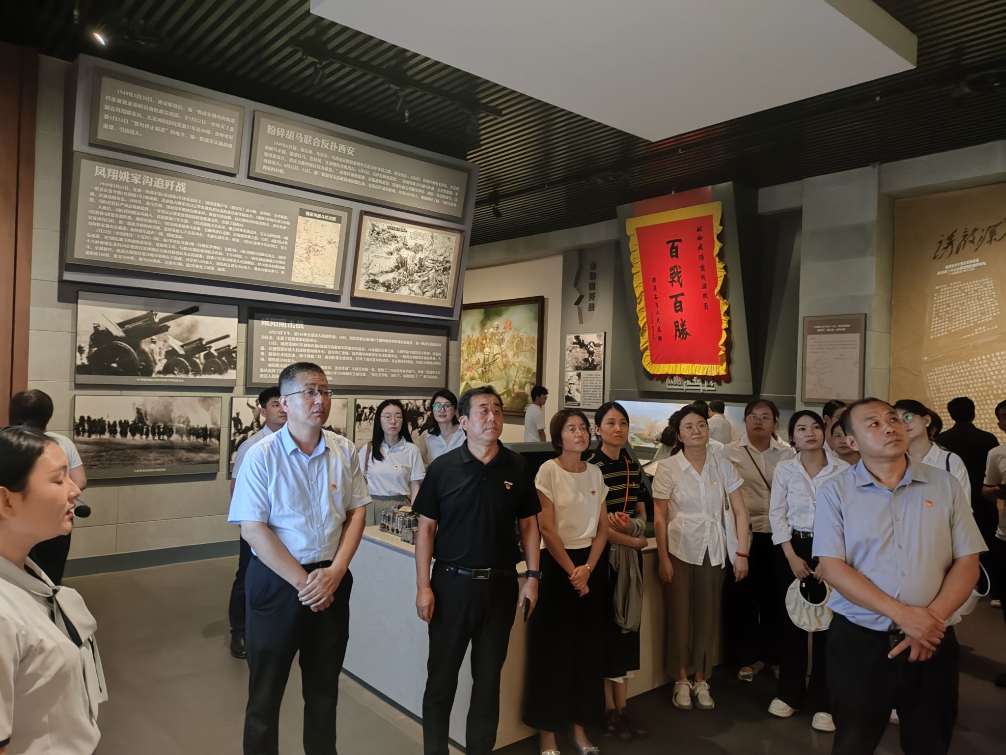 党员们跟随讲解员的脚步,参观了第一展厅、第二展厅。聆听战役故事,观看珍贵的历史照片、文物史料和多媒体影像,全面了解了扶眉战役的战略部署、战斗历程和英雄事迹。一幅幅生动的战斗场景、一封封泛黄的笔记家书、一件件斑驳的武器装备,无声诉说着革命先烈不畏牺牲、英勇奋战的壮烈历史。大家驻足凝视,聆听讲解,彼此交流,深刻体会到扶眉战役体现出的“听党指挥、敢打必胜、团结协作、勇于牺牲”伟大精神。