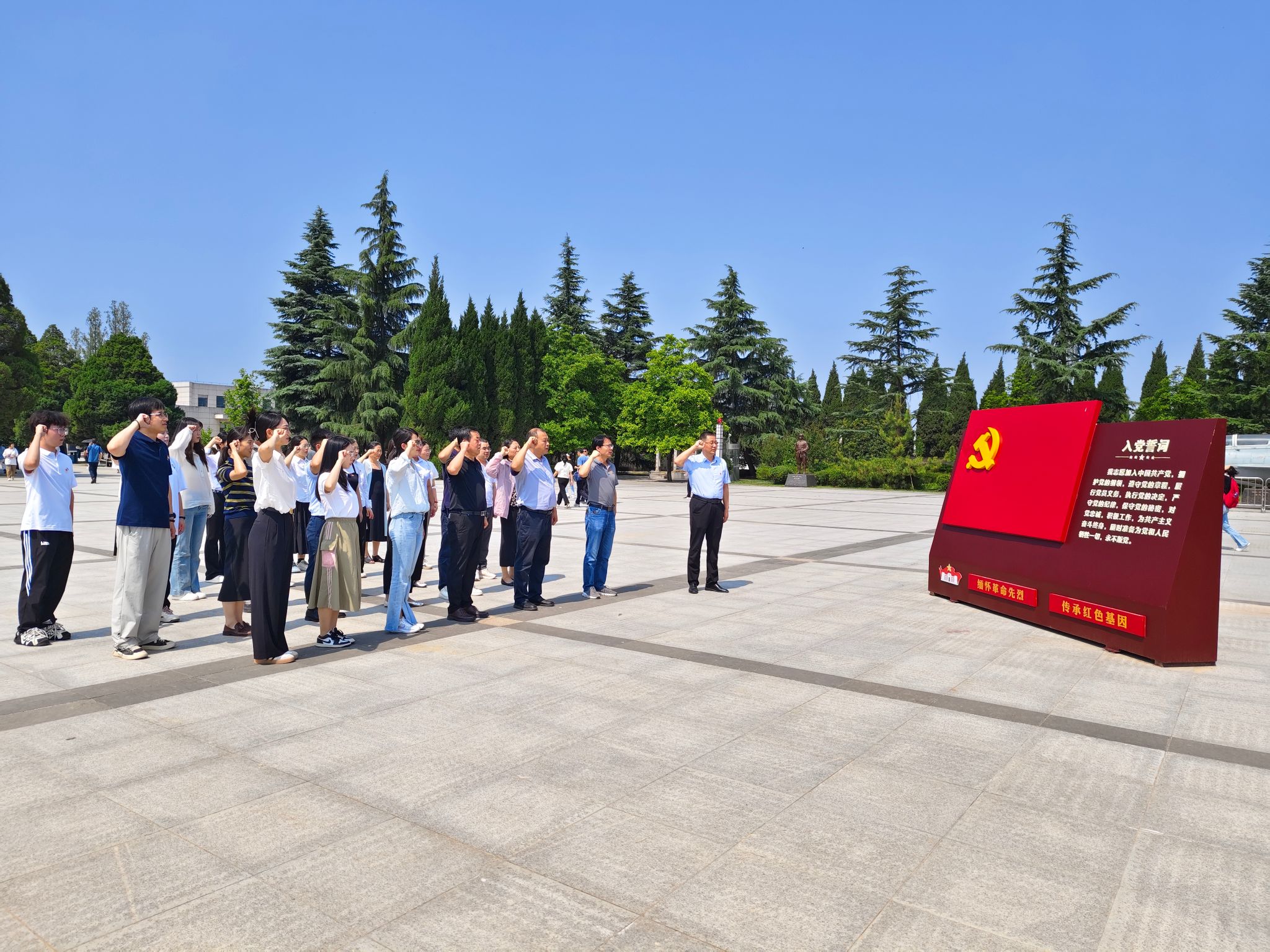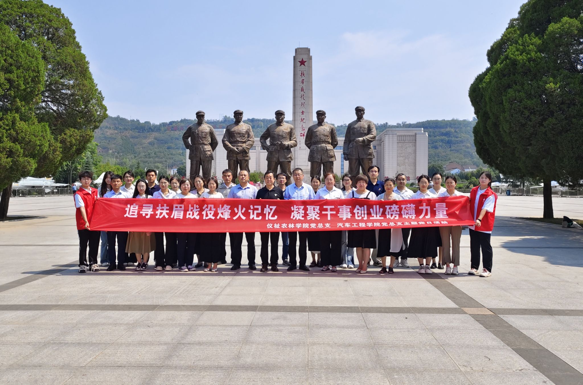 扶眉战役是解放战争时期西北战场上规模最大、歼敌最多的一次战略决战,为解放大西北奠定了坚实的胜利基础。高大肃穆的扶眉战役烈士纪念碑前,全体党员面对鲜红的党旗整齐列队,重温入党誓词,铮铮誓言回荡在纪念馆广场,心中不由涌出的一丝丝悸动化作无形的力量,更加坚定了大家的理想信念和奋斗决心。