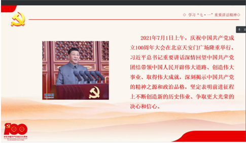 全体参会人员表示,要把学习贯彻习近平总书记“七一”重要讲话精神作为当前和今后一个时期工作的重中之重,作为党史学习教育的核心内容,坚持全面系统学、融会贯通学、联系实际学,准确把握习近平总书记“七一”重要讲话的精髓要义和精神实质,以讲话精神为动力,发扬党的光荣传统和优良作风,把学习宣传贯彻的成果转化为奋进新征程建功新时代的实绩实效,扎实做好公司各项工作,确保圆满完成全年目标任务,努力做出无愧于党和人民、无愧于历史和时代的新业绩。