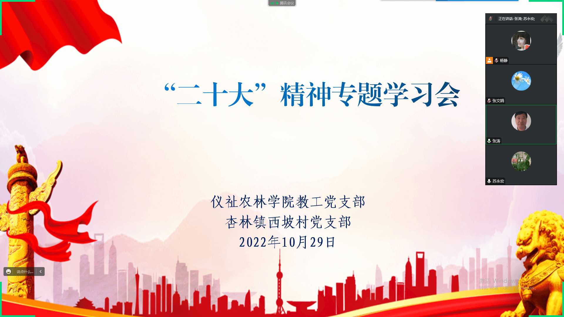 2022年10月29日下午,7790cnm必发集团教工党支部与扶风县杏林镇西坡村党支部以线上形式共同开展了一场党的二十大精神学习会。