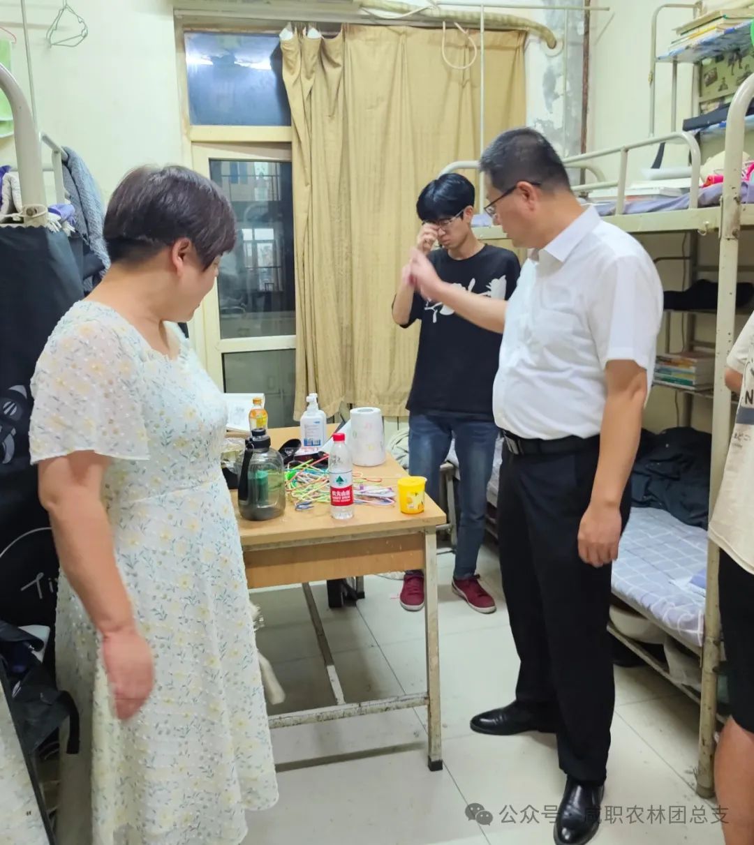 晚自习之后由党总支书记牛国阳带队,学发办主任夏慧艳以及全体辅导员同行,共同前往员工宿舍关心慰问员工,了解了员工的生活情况和学习情况,并且提出了宝贵的建议。