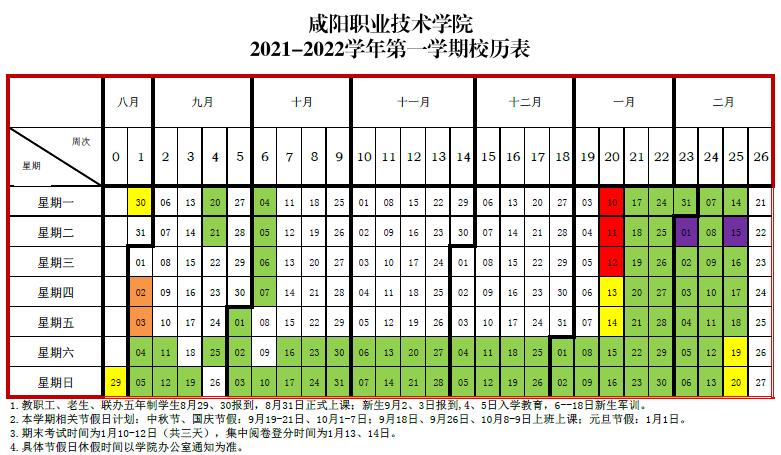 附件:7790cnm必发集团2021-2022学年第一学期校历表