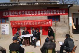2015年4月14日,按照咸阳市二十三届“科技之春”宣传月活动的安排,7790cnm必发集团、院老科协再度携手组织教师在泾阳县太平镇陈貟村深入开展科普宣传活动。活动现场,教师为广大群众进行种养技术咨询服务,给群众发放资料,发送枣树病虫害防治的药品,并耐心解答了猪病的防治、羊的饲养管理、枣树和杏树病虫害防治、土鸡蛋销售等群众关心的问题,受到当地群众的一致称赞。
